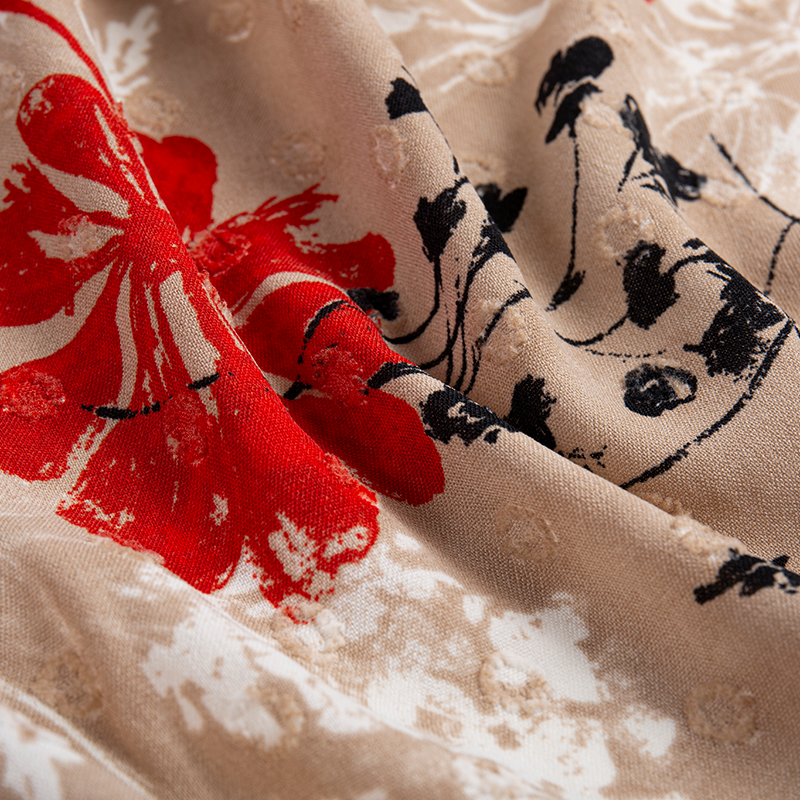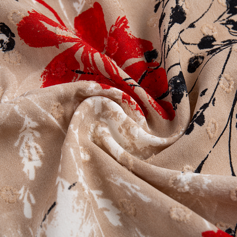 | 2-16 | 100% Poliester | Jacquard 180D*180D | 150GSM | 57/58 | Mencelup, mencetak, menyulam, berkedut, setem panas, pengacuan titisan, dll. | Fesyen lelaki dan wanita, pakaian, kulot, baju, tekstil rumah, dsb. |