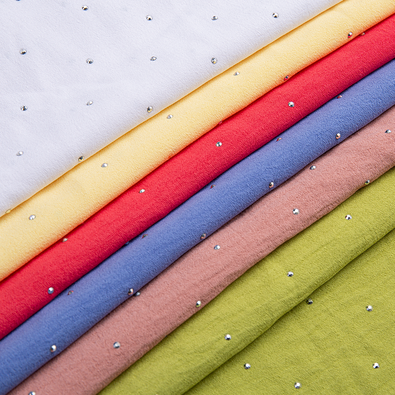| 2-7 | 99% Poliester, 1% Rayon | 180D 120D*180D | 160GSM | 57/58 | Mencelup, mencetak, menyulam, berkedut, setem panas, pengacuan titisan, dll. | Fesyen lelaki dan wanita, skirt dan seluar, pakaian, baju, tekstil rumah, dsb. |