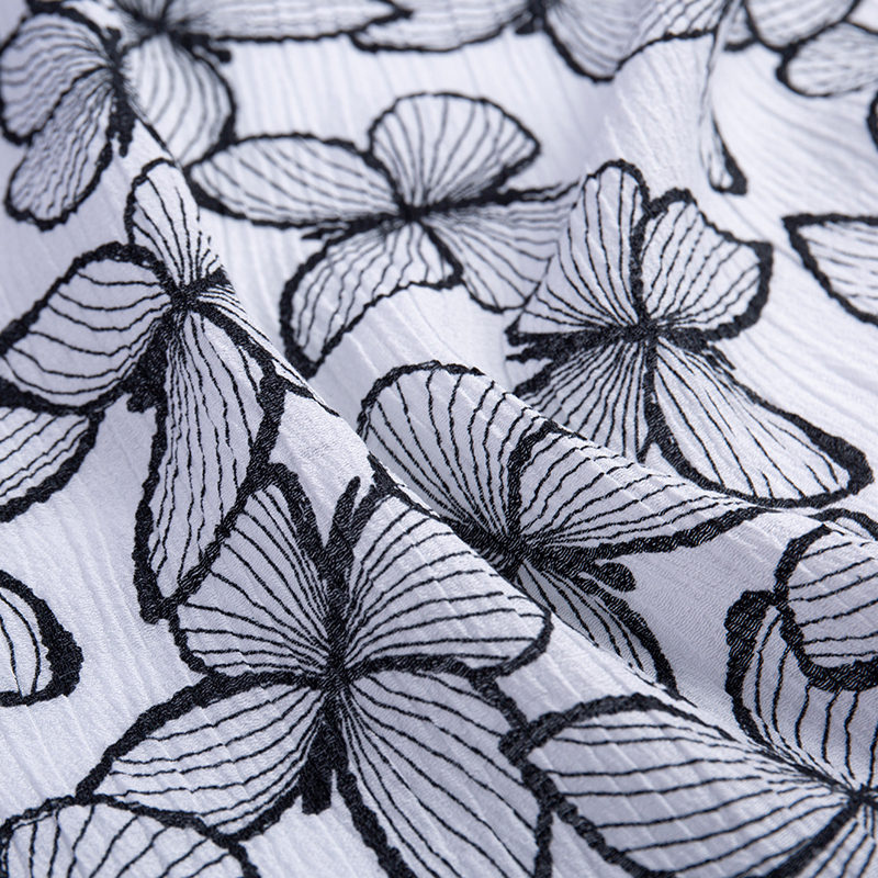| 10-8 | 17% Nylon, 83% Rayon | 20D*30s | 105GSM | 57/58 | Pencelupan, kedutan, pelbagai teknik percetakan, sulaman, hot stamping, flocking, dll. | Lembut dan bernafas, sesuai untuk fesyen musim bunga dan musim panas, pakaian, baju, pakaian pantai, seluar kasual, langsir, sarung sofa, dsb. |