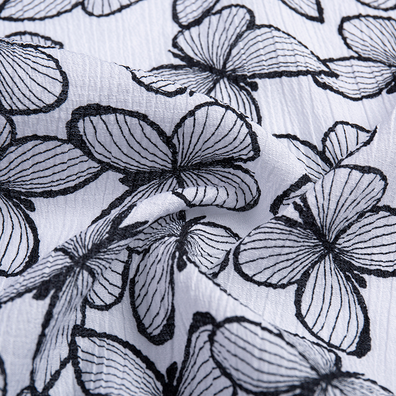 | 10-5 | 68% viscose, 20% nilon, 12% hem | 20D*21s 20D | 125GSM | 57/58 | Pencelupan, kedutan, pelbagai teknik percetakan, sulaman, hot stamping, flocking, dll. | Lembut dan bernafas, sesuai untuk fesyen musim bunga dan musim panas, pakaian, baju, pakaian pantai, seluar kasual, langsir, sarung sofa, dsb. |